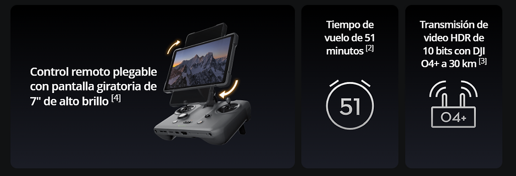 Cámara principal Hasselblad de 100 MP, dos telecámaras CMOS de gran tamaño, estabilizador Infinity con rotación de 360°, detección de obstáculos omnidireccional Nightscape de 0,1 lux, transmisión de vídeo O4+... El DJI Mavic 4 Pro es revolucionario, con características de vanguardia que redefinen nuestra tecnología y llevan la imagen y el rendimiento de vuelo de los drones DJI a niveles sin precedentes. Este dron insignia con triple cámara está listo para transformar la forma de crear y explorar nuevos horizontes en la fotografía aérea